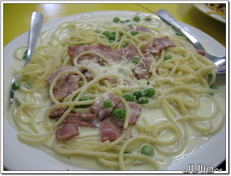 這是培根蛋奶麵,味道還不錯,奶味很重。