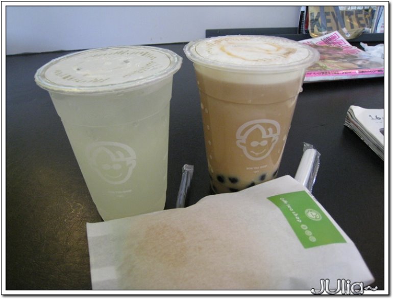 我們點了一杯檸檬愛玉和一杯珍珠紅拿還有一個銅鑼燒。