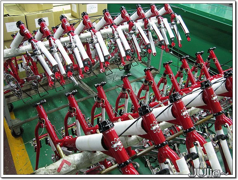 附上一張學校研習去參觀KHS工廠照,好想要一台這種紅色的T3阿!