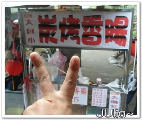 飢腸轆轆的ee隔著車窗對香腸攤比:"來兩條吧!老闆!"