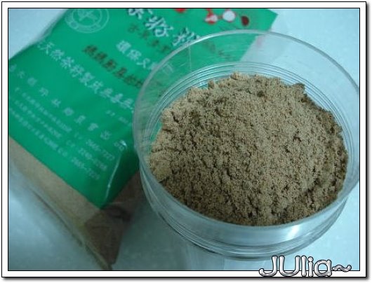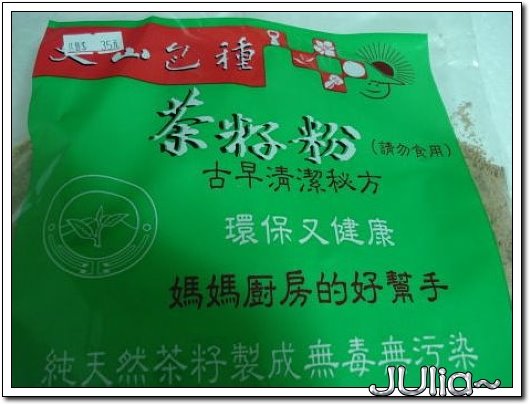 同事lolo給了我一包茶籽粉,是用來洗碗的!這種東西純天然又健康,無毒又環保,真的是好物!要用時沾一點在菜瓜布上,刷洗一下碗盤,再用水沖乾淨,真的是洗得乾乾淨淨,清潔溜溜~(就是一般吃過飯的碗盤) 不過我後來太迷信它的清潔效果,把他拿來洗抽油煙機的濾網~ㄟ~~這種時候,還是白博士好用~哈哈!