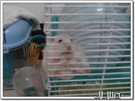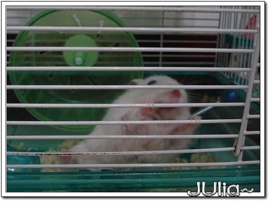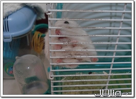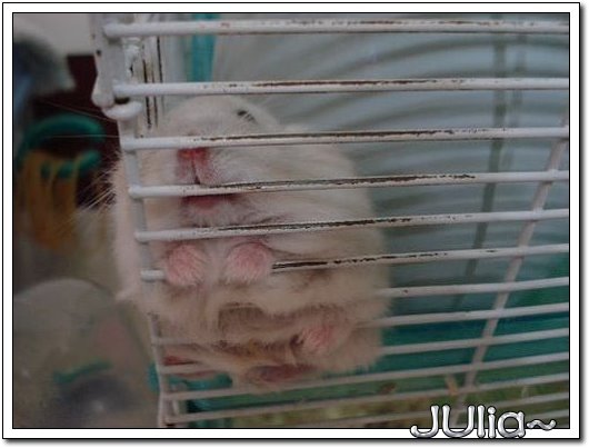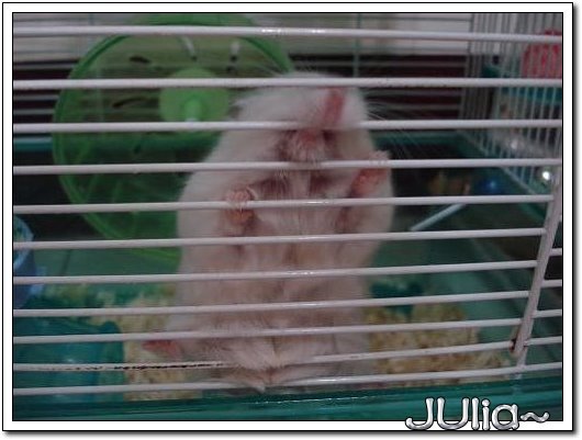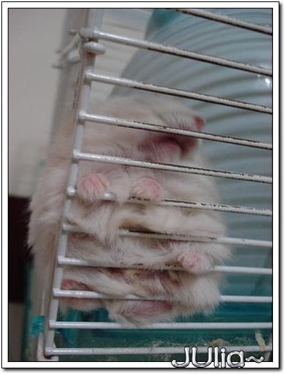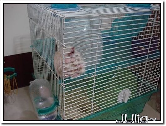 一開始,當我的手靠近籠子,她會以為我要給他東西吃~