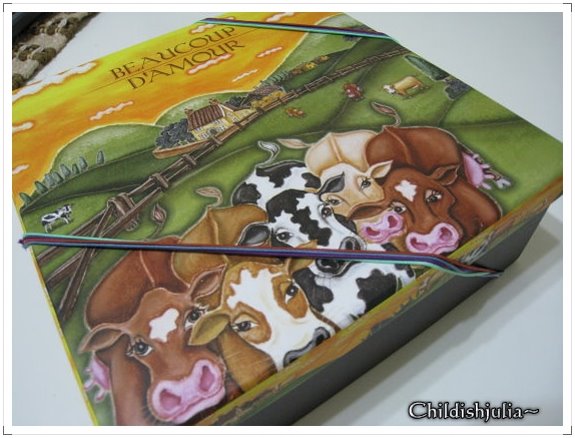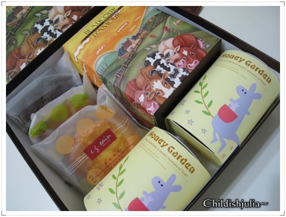 這是9月最後一份彌月禮盒的吧!!!整個九月,吃這些餅乾吃到很怕咧~每盒都是挑一些自己愛吃的吃掉之後,剩下的都拿到學校請小孩吃~(小孩該不會是因為這樣才愛我的吧???)這個包裝盒子超可愛~全部都是用乳牛包裝~我一度以為是哪家沒聽過的牌子呢!
