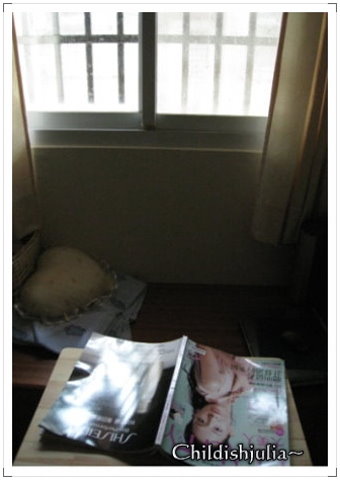 拿出雜誌靠在窗邊,靠著微弱的光線,隨意翻一翻,