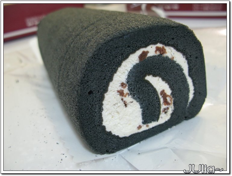 這個"東京竹炭雪捲",是孟宗竹炭捲著奶油起士跟巧克力薄餅。